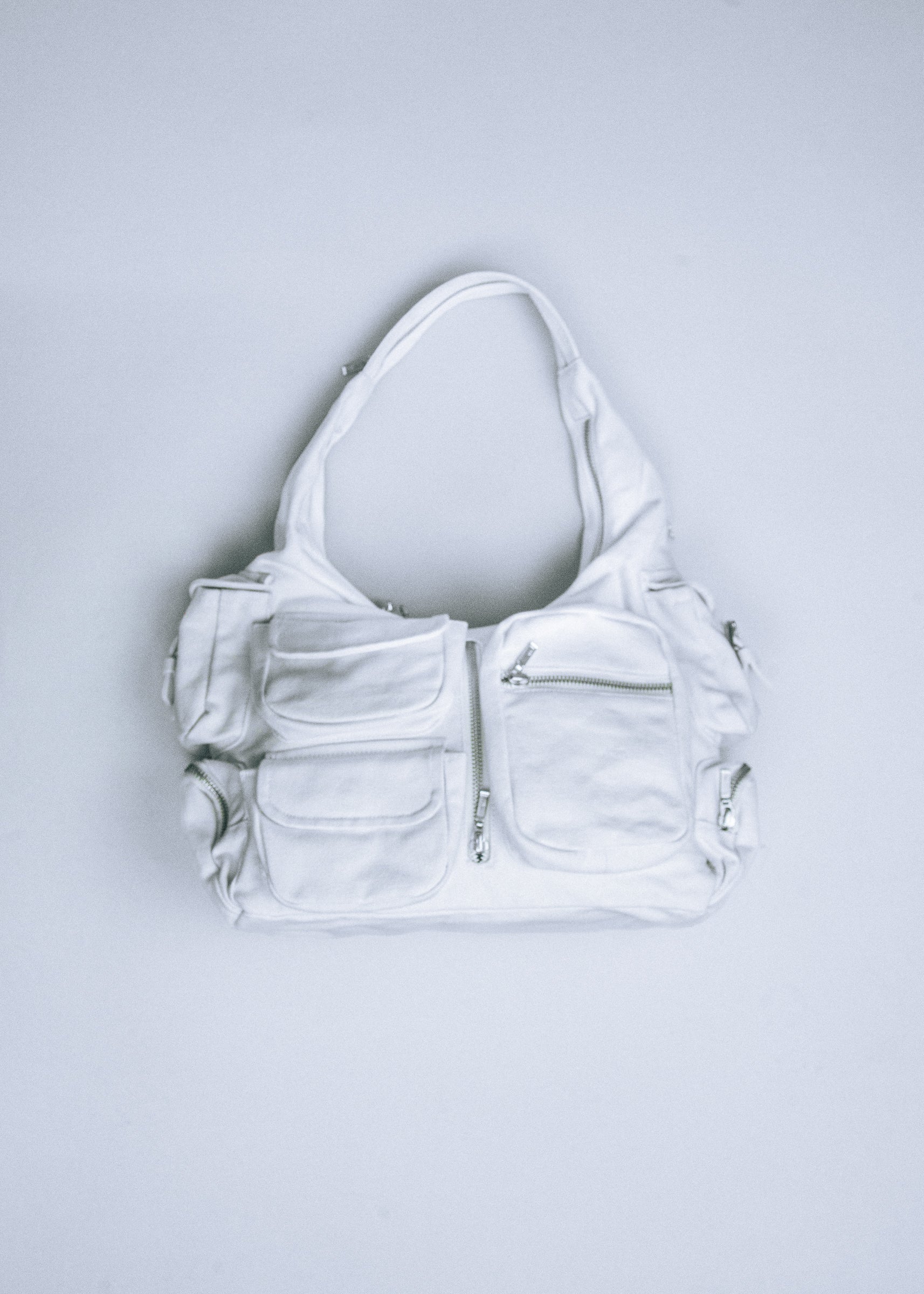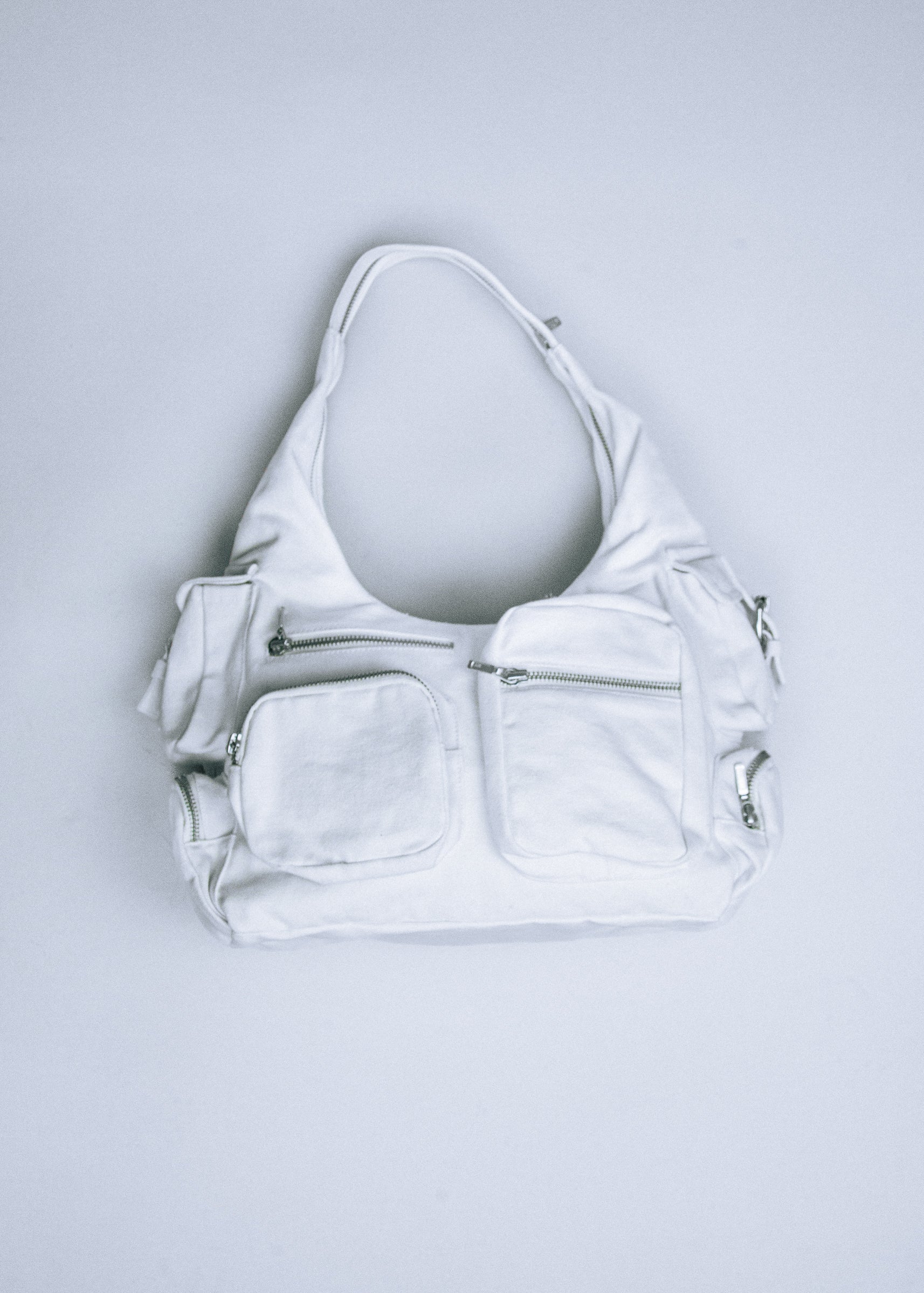 The Nomad bag is an over the shoulder option in our cargo collection that features a curved silhouette and comfortable shoulder strap. Front, back and side pockets provide ample space to fit all of your essential items. It is a perfect on-the-go bag for the nomad in your life.