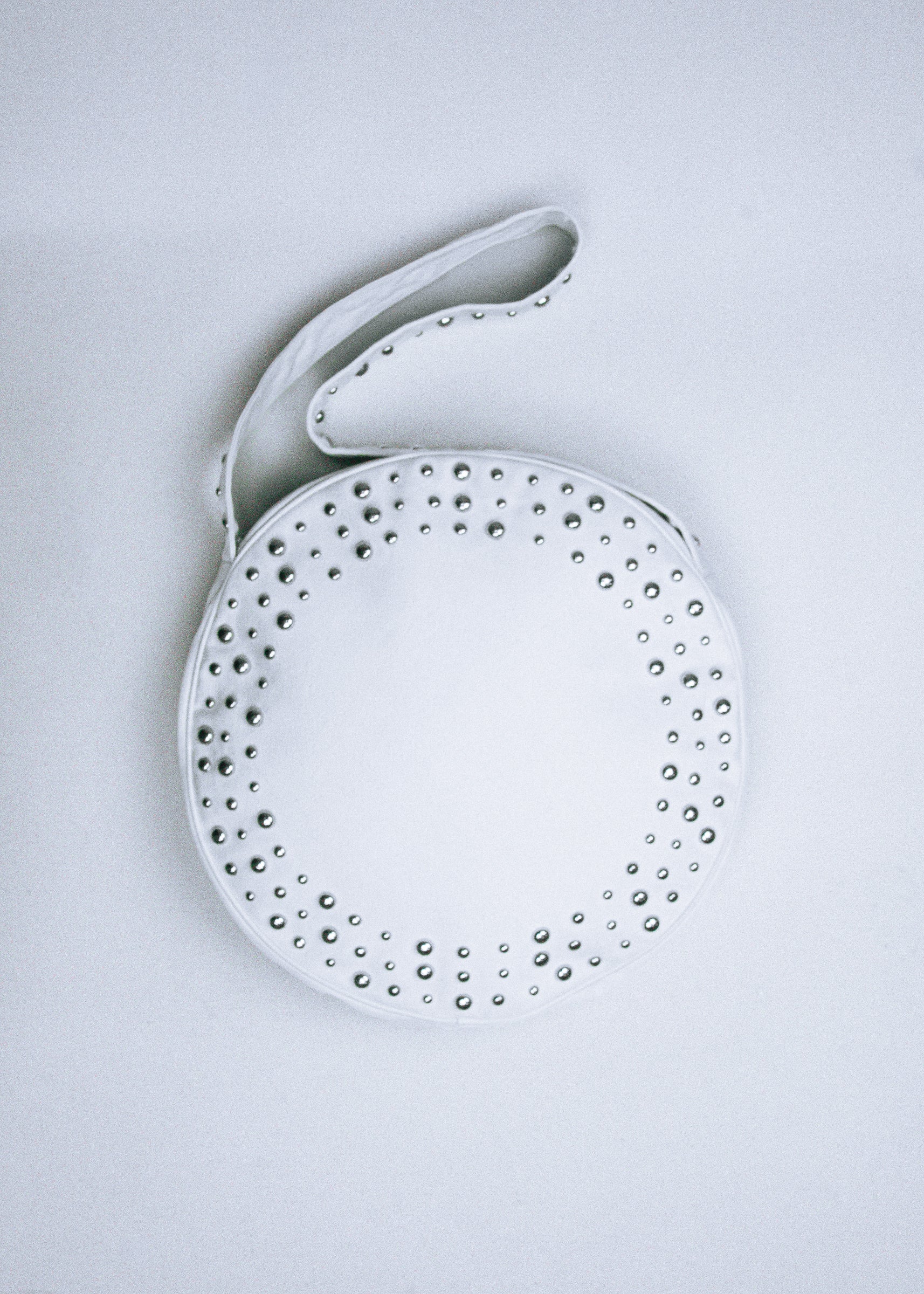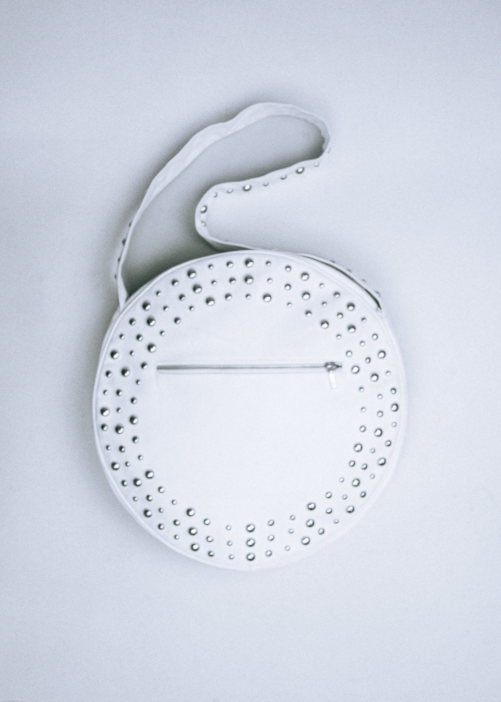 The Soho Bag was designed with both style and versatility in mind. This studded bag features a sleek, circular shape that makes a bold statement. The adjustable strap ensures a personalized fit, while the zipper on the back adds both functional and visual interest, allowing for easy access to your essentials. Perfect for any occasion, the Soho Bag effortlessly transitions from casual outings to evening events with a standout presence.