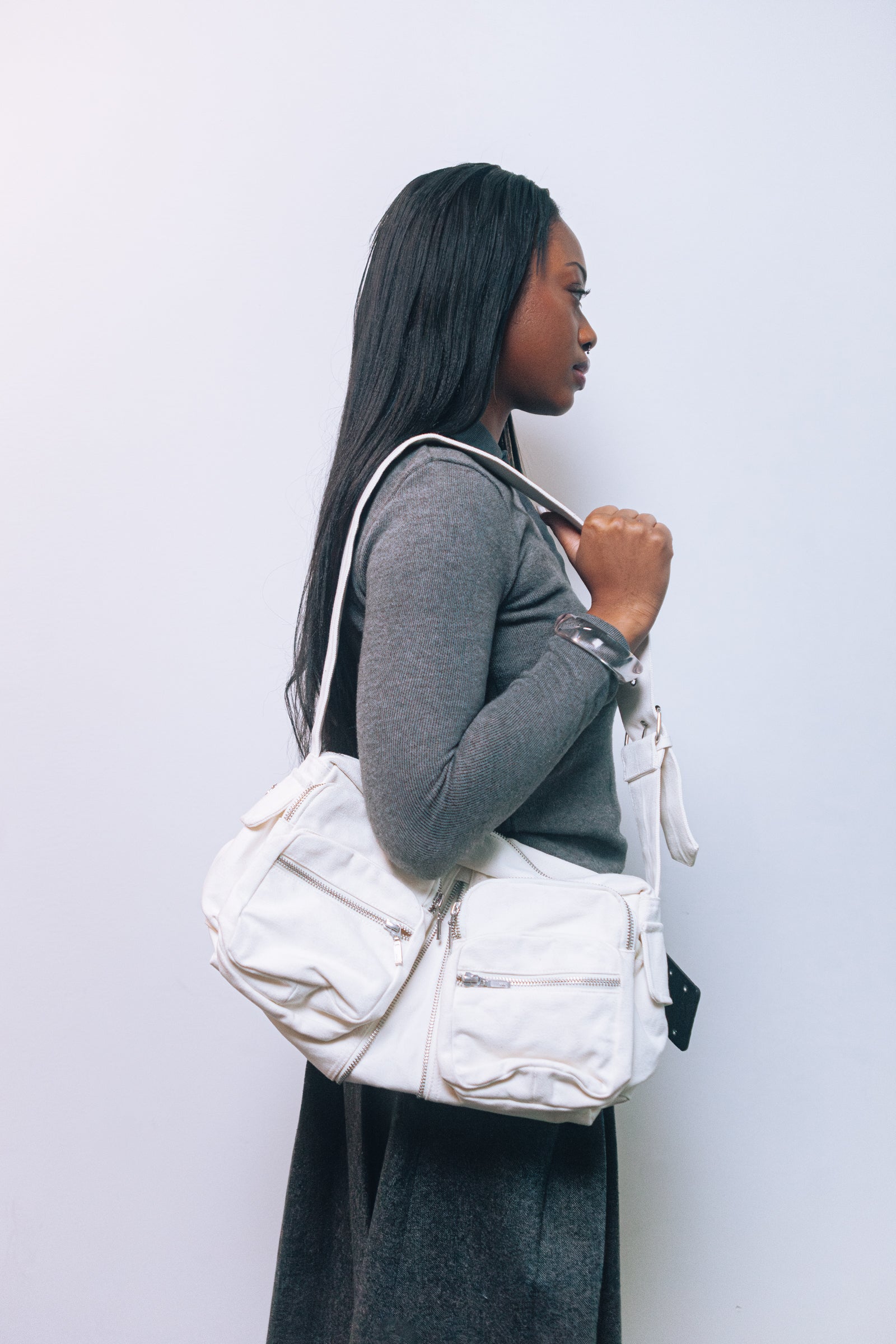 The Tourist Bag reimagines the timeless camera bag with a modern twist, combining both style and practicality. This rectangular shoulder bag is designed with an adjustable strap for a customizable fit. The standout feature is the innovative zipper detail, which allows the bag's shape to expand, providing additional space when needed. Not only does this expansion enhance its functionality, but it also elevates the bag's silhouette, creating a sleek and refined look that transitions effortlessly from day to night.